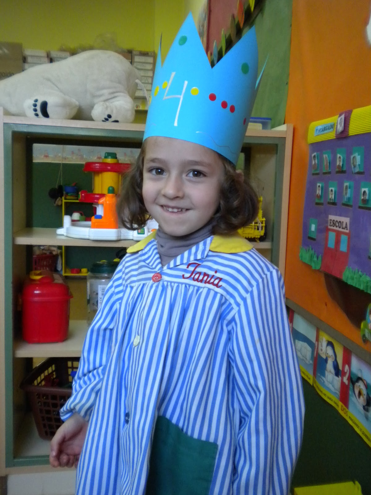 Onte e hoxe foron días de celebracións. Tania cumpriu 4 aniños e Irene 3. As dúas decoraron ao seu gusto a súa coroa de anfitrona que luciron orgullosas. Cantámoslle varias cancións de cumpreanos e fixémoslle unha tarxeta-agasallo entre