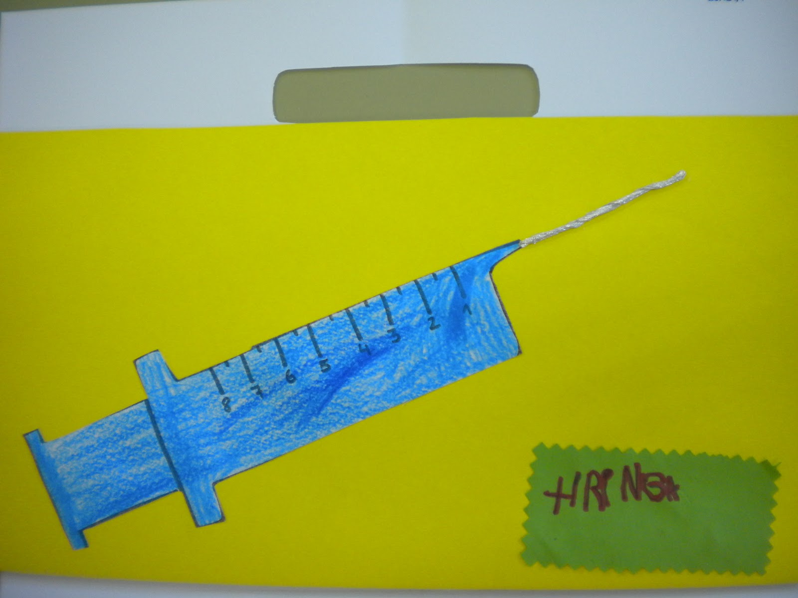 Logo a profe propúxonos facer o noso propio "Libro-botiquín" e puxémonos mans á obra. Comezamos coa XIRINGA coloreamos o seu debuxo e fixemos con papel prateado un agulla, as tartarugas escribiron o seu nome e así quedou a nosa primeira páxina...Xa volo iremos ensinando!