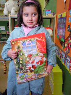 A semana pasada na caixa máxina o trasniño deixounos algo que ao principio e polo tacto pareceunos un conto! A nosa sorpresa foi cando descubrimos que era..un quebracabezas dicía algún pequecho? a profe explicoulles que se trataba dun calendario de Nadal e que era moi especial porque debaixo de cada día, ábrese unha ventá que esconde unha sorpresiña de chocolate que tomará o encargado/a do día...
