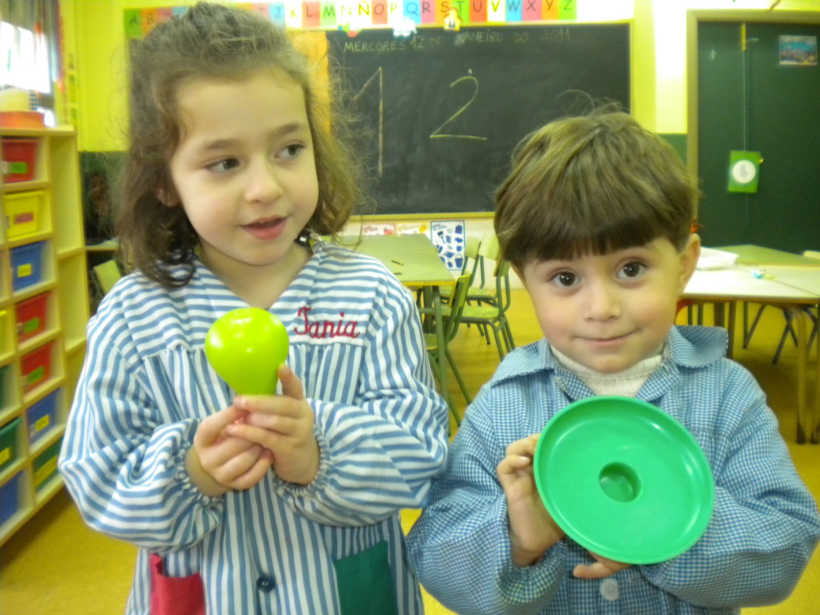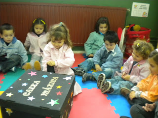Onte tamén tivemos unha visita moi pero que moi especial...nada maís e nada menos que a tele! Viñeron ao cole para facer unha reportaxe para un concurso no que participarán os nenos maiores, e gravaron un pouquiño na nosa clase polo que nós tivemos que marchar, cousa que a Tania non lle pareceu nada ben, ela quería saír na tele!! :)