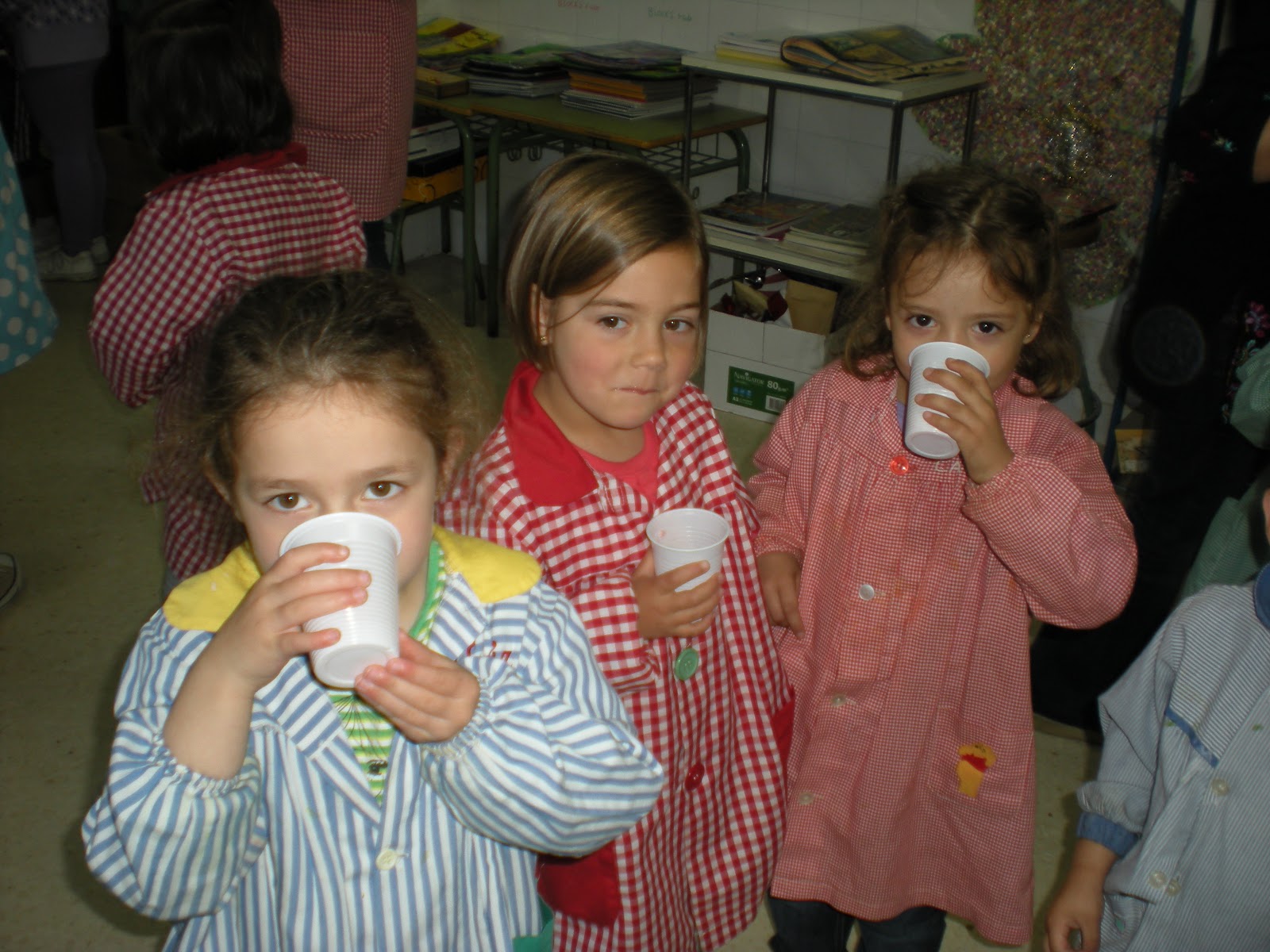 Xa ao comezo da mañán estivemos vendo unha peli "Vecinos Invasores" na que intentaba concienciarnos un pouquiño sobre o consumismo. Logo os peques merendamos e saimos ao recreo mentres que os maiores escoitaban unha charla sobre bebidas saudables, logo disto axudaron prepararon os seus propios zumes e nós tamén subimos a probalo!!