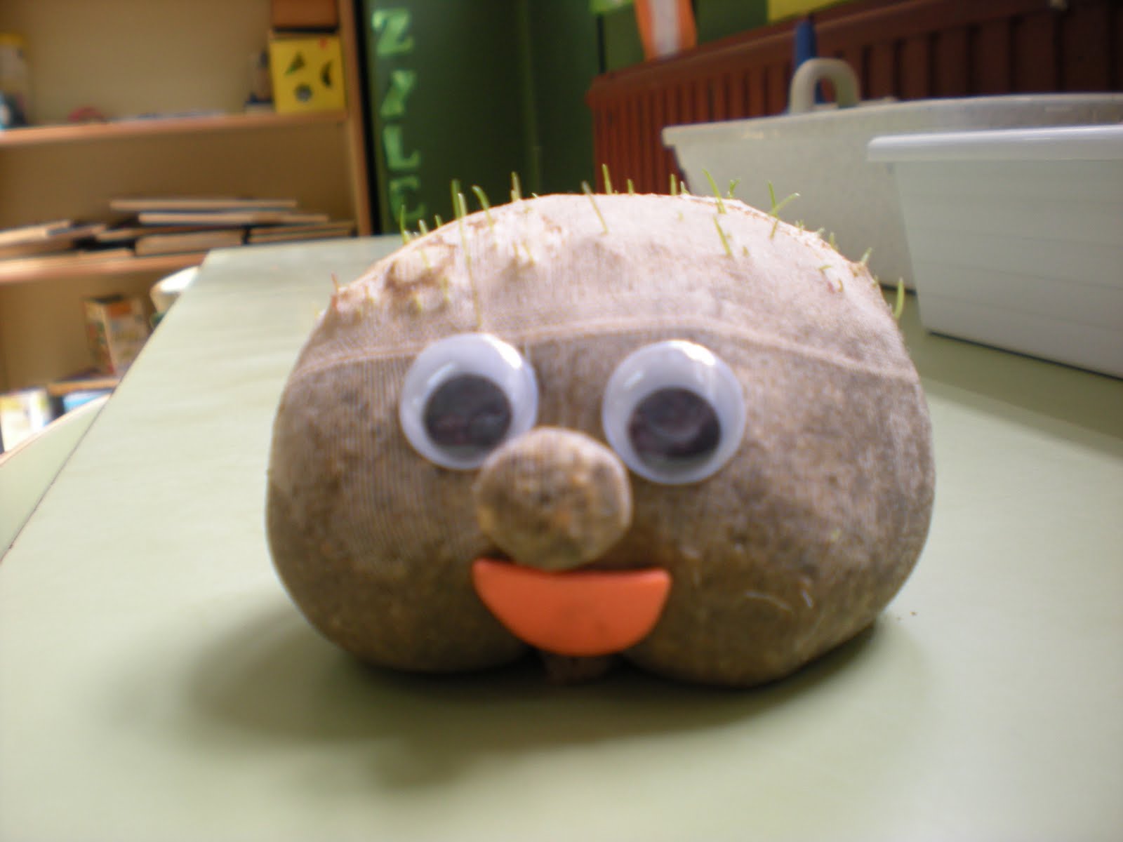 A semana pasada fixemos uns simpáticos bonequiños aos que a profe lle chama Cespitos porque o seu pelo será céspede!!